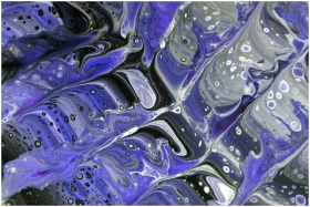 Swirling purple and black abstract fluid art design with intricate patterns and textures.