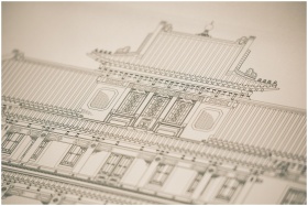 Detailed drawing of a traditional building showcas