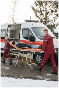 Paramedics transferring a patient on a stretcher to an ambulance for emergency care.