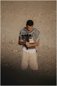 A young man with a camera explores the desert land