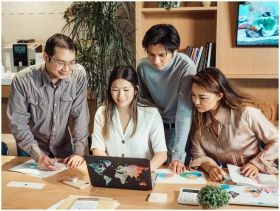 A diverse group of professionals collaborating on