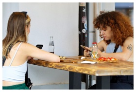 Women Dining Friends Smartphone