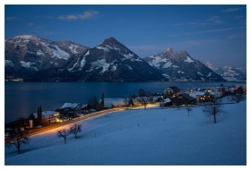 Winter Lake Mountains Lake Lucerne Region