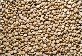 A detailed macro shot of scattered dog food pellet