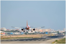 Airplane approaching runway at Manises Airport in