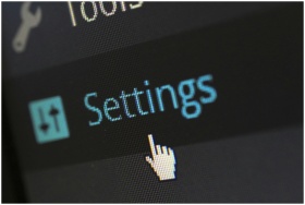 A close-up photo of a computer screen showing the settings button with a cursor hovering over it.
