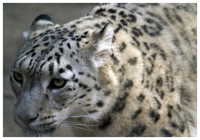 Detailed close-up of a snow leopard highlighting i