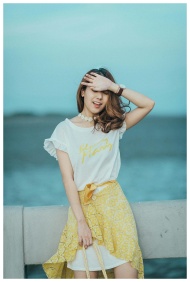 Fashionable young woman in a relaxed pose by the o