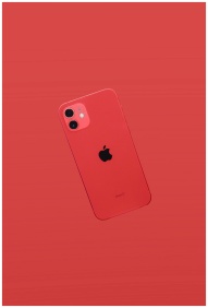 Red smartphone on a matching red background showca