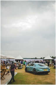 A luxury car displayed at an outdoor event with a large crowd and tents.