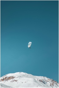 Thrilling paragliding adventure above snow-covered