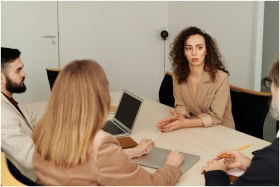 A diverse team of professionals engaged in a business meeting in a modern office setting.
