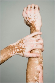 Detailed view of hands showing skin condition, highlighting unique patterns.