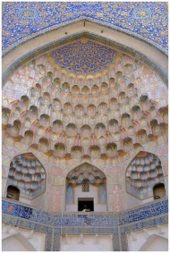 Beautifully detailed Islamic arch with colorful patterns and intricate tile work.