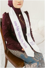 Woman wearing maroon academic robe and white sash during graduation ceremony.