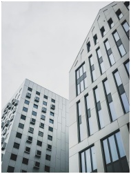 Low angle view of modern buildings in Gdańsk showcasing urban architecture and design.