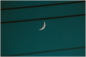 A crescent moon shines brightly in a clear night s