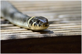 Detailed image of a common garter snake with focus