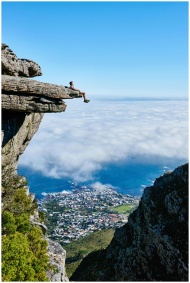 A person sits on a cliff edge enjoying a breathtak
